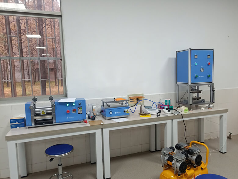 En octubre de 2019, la Universidad de Xiangtan firmó oficialmente un contrato con Tmax y completó el pago inicial en una semana. En diciembre de 2019, completaron el pago del saldo y todas las máquinas (caja de guantes, prensa de rodillos, selladora, troqueladora de electrodos, máquina formadora de vasos para celdas de bolsa, etc.) fueron entregadas a la Universidad de Xiangtan. Tras la instalación y puesta en marcha en un día, el 12 de diciembre de 2019, todas las máquinas pasaron la inspección de la universidad. Tras tres días de capacitación exhaustiva, el personal de investigación de la Universidad de Xiangtan ya conocía bien el funcionamiento de todos los equipos.