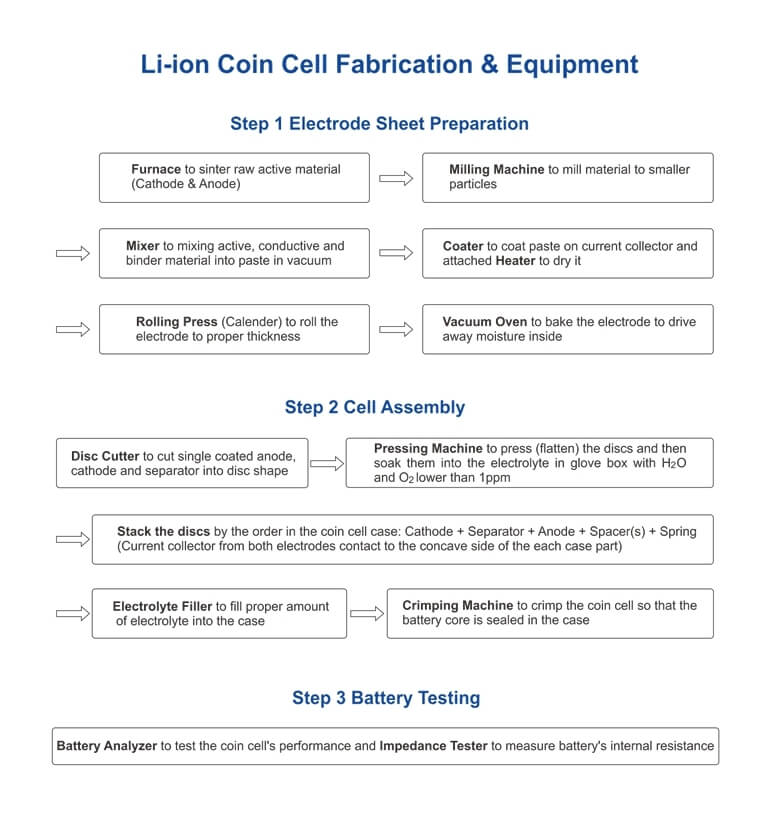 Diagrama de flujo de celdas de botón de iones de litio y lista de máquinas