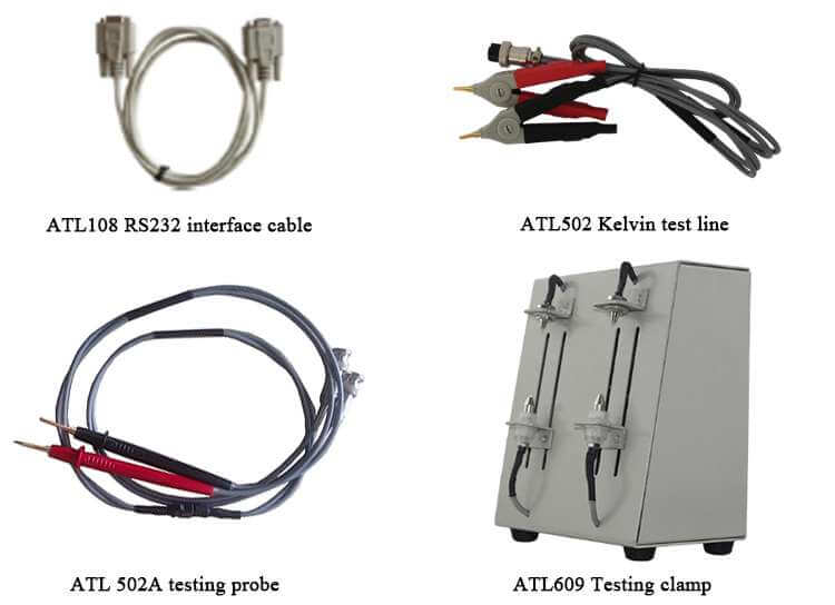 Apéndice | Línea de prueba Kelvin ATL502, cable de interfaz ATL108/RS232 |