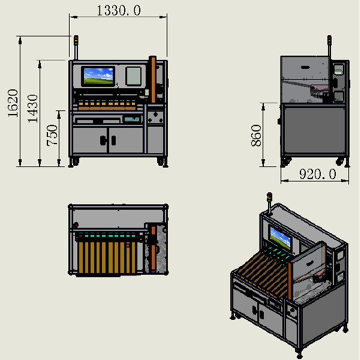 El dispositivo de clasificación automática consta de un mecanismo de alimentación, un mecanismo de detección, un mecanismo de clasificación automática y un mecanismo receptor. El sistema de la máquina diseña y desarrolla el software superior según las necesidades del usuario, clasifica automáticamente las baterías según la información de agrupación y las recoge en los receptores correspondientes.