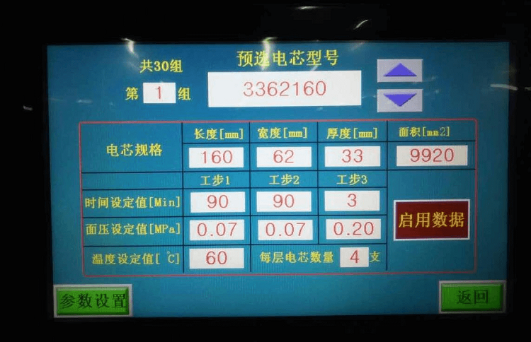 1. Proceso de acción del equipo : encendido → configuración de parámetros → calentamiento → encendido de la batería → cierre de la puerta → formación → formación completa → extracción de la batería