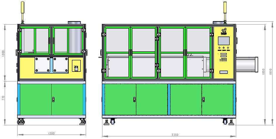 2.5 Dimensión total del equipo: aproximadamente 2350 mm (sin incluir el cilindro) (largo) * 1200 mm (ancho) * 1850 mm (alto) (la dimensión estará sujeta al diseño final)