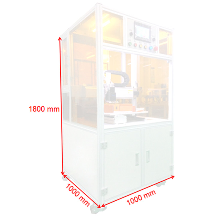 Rango máximo de tamaño de trazo | X : 500 mm , Y : 400 mm , Z : 35 mm , R : 180º La distancia entre la plataforma de herramientas y la aguja de soldadura se puede ajustar en 300 mm . |