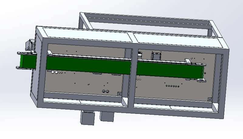 La placa de goma se posiciona hacia arriba y hacia abajo para aumentar la fuerza de fricción, luego se empuja la carcasa de acero para separarla, y los residuos se depositan en el riel (hay deflectores a ambos lados de la cadena, que no se muestran en la figura). El piñón gira hacia abajo y se recicla en el contenedor de reciclaje ubicado en la parte inferior de la mesa.