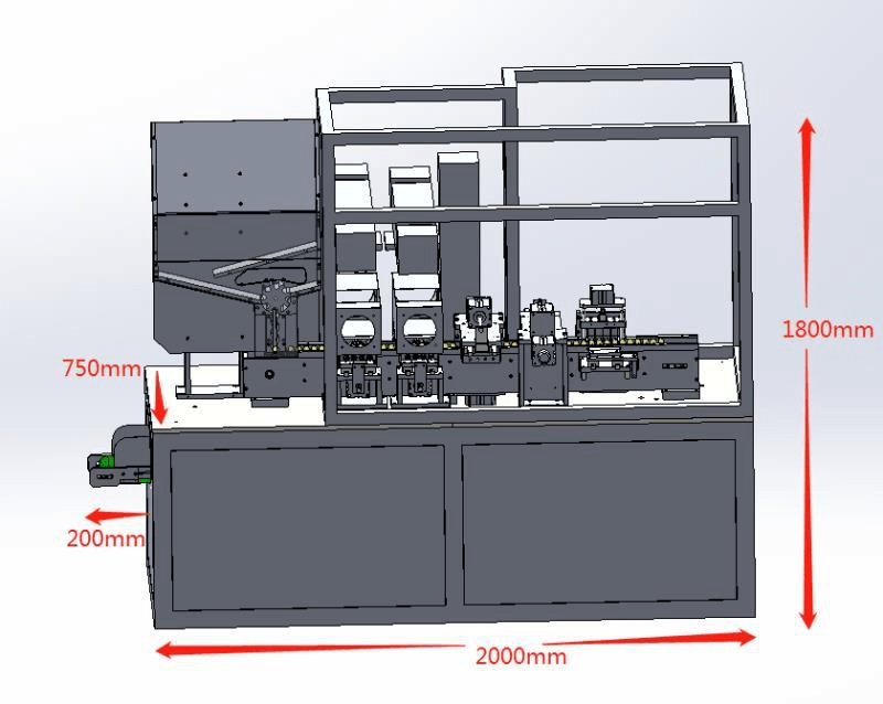 Equipo de alimentación automática de cajas : 1000 mm x 700 mm x 1800 mm ( largo x ancho x alto )