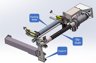 2 | Unidad de desenrollado | Eje de expansión de aire, rodillo tensor, cilindro de bloqueo, unidad de guía de banda | 1 |