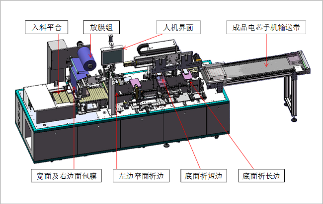 Se adopta el núcleo eléctrico de empuje servo, y las acciones de dibujo, recubrimiento y corte de la película se completan a través del cilindro de aire + servo y mecanismo de precisión para realizar películas de pan azul anchas y estrechas.