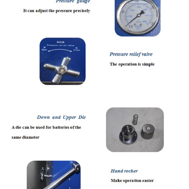 Ventajas | 1. La matriz inferior con espaciado de anillo de posicionamiento de alta precisión, controla la altura del sello de la batería. 2 La matriz superior está provista de un mecanismo de resorte de tornillo interno de copa de sellado, que garantiza que en caso de que la abrazadera de sellado de la batería no se pueda quitar, solo el tornillo superior gire en el sentido de las agujas del reloj y la batería del botón salga. 3 Mediante el uso de aleación de aluminio y acero de alta resistencia, Superficie después del proceso de galvanoplastia de protección ambiental. nunca se oxidará |