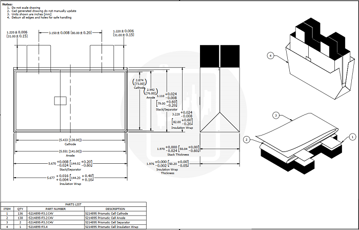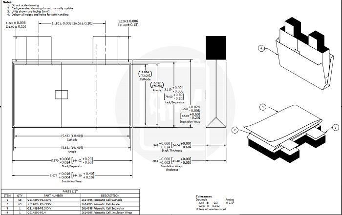 Punto de referencia 1 : celda de 30 AH (20 PPM) - 3,9 V 30 AH, 68 cátodos , 69 ánodos