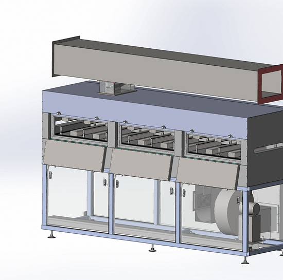 En la sección de secado, el ventilador es controlado por el convertidor de frecuencia para suministrar aire al horno, el cual se calienta mediante un calentador eléctrico antes de entrar en el horno. Además, está equipado con una función de reciclaje de aire caliente, lo que reduce eficazmente el costo de uso. Dado que el convertidor de frecuencia controla el motor de suministro de aire, la regulación del volumen de aire es conveniente. El ventilador está hecho de acero inoxidable y es duradero.