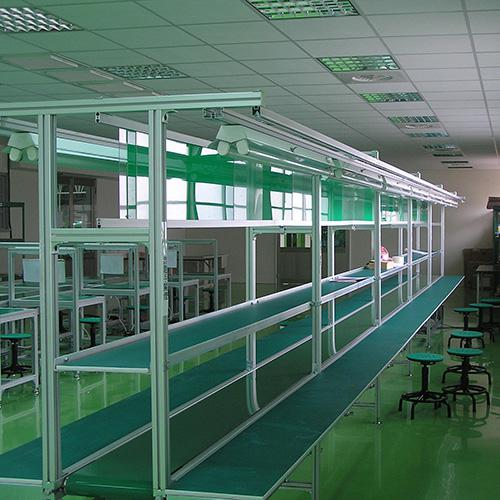 | 1. Especificación lineal: L12*W1.1*H2 m (ajustable) 2. Producción de aleaciones de aluminio 3. Con toma de corriente, conector de suministro de aire, lámpara LED de bajo consumo. 4. Complete el proceso de ensamblaje después de soldar el módulo. |