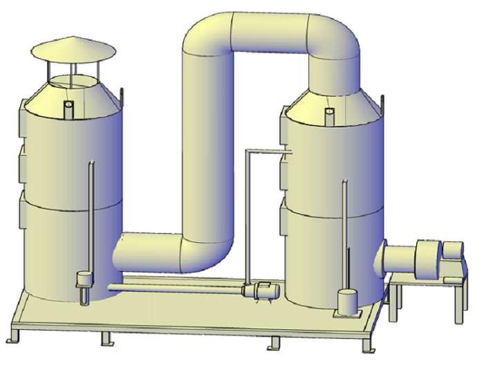 Propósito y composición principal: Se utiliza principalmente para absorber el gas NMP descargado desde el exterior, se compone principalmente de una torre de absorción, bomba magnética, ventilador, detector de concentración de líquido, válvula reguladora, empaque regular, eliminador de niebla, etc.