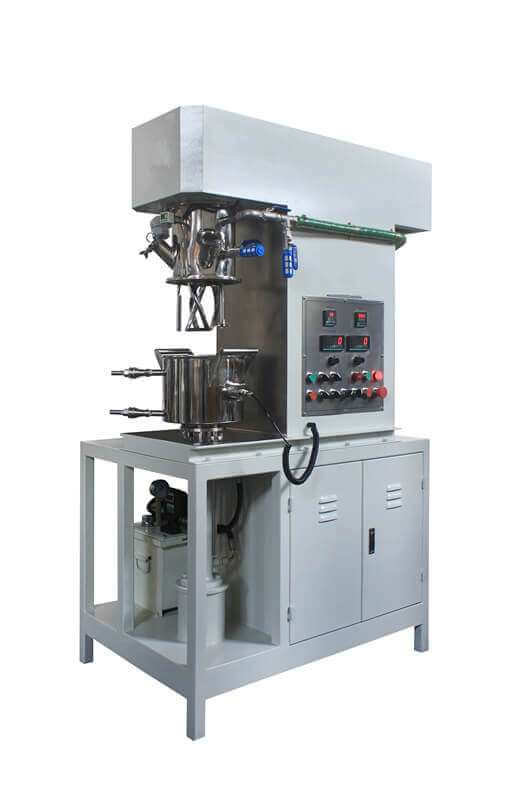 l Fase de mezcla en seco : Las paletas agitadoras giran mientras se levanta el barril.