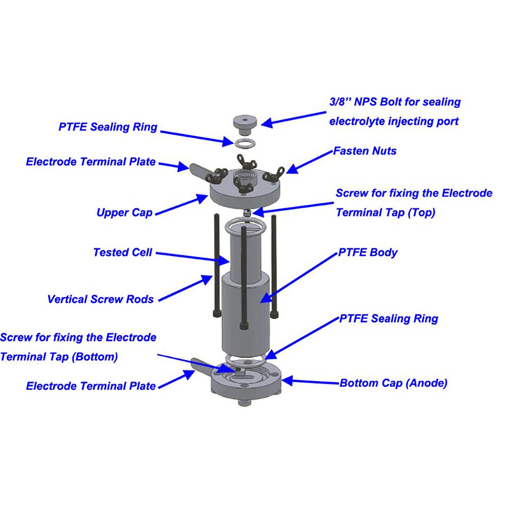 La celda de prueba EQ-SC-26650 26650 está diseñada para probar baterías 26650. Su diseño desmontable permite probar el ciclo.