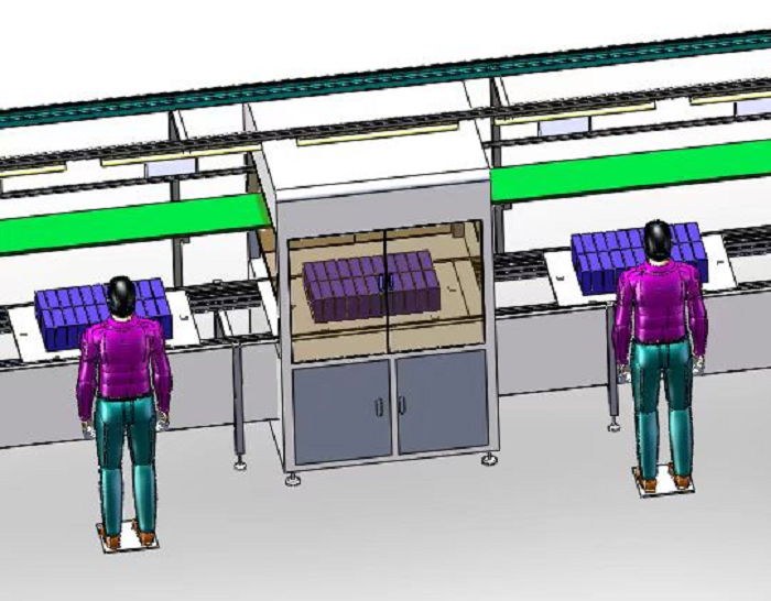 Esta línea de producción personalizada se utiliza principalmente para completar las funciones de ensamblaje, inspección, montaje y soldadura del módulo de batería de almacenamiento de energía de celdas prismáticas. Esta línea semiautomática incluye reflujo automático de bandejas vacías y alimentación manual, escaneo y clasificación automática de celdas, apilado manual, prensado y agrupado automáticos , escaneo y agrupamiento manual, detección automática de polaridad , limpieza automática de polos , colocación manual de barras colectoras, soldadura automática de barras colectoras , inspección visual manual del efecto de la soldadora, prueba de resistencia interna a presión total, elevación y montaje fuera de línea, soldadura automática de arneses de cables , escaneo y unión BMS, pruebas exhaustivas, elevación y montaje fuera de línea.