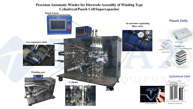 TMAX-YS-BLY es una nueva máquina bobinadora semiautomática para el ensamblaje preciso de núcleos de electrodos de celdas de bolsa planas. La película separadora se intercala entre los materiales del cátodo y el ánodo y luego se enrolla formando un núcleo de celda de bolsa prismática con una fuerza de tensión constante. Esta herramienta ideal proporciona la fiabilidad y precisión necesarias para producir bobinados de alta calidad de núcleos de electrodos.