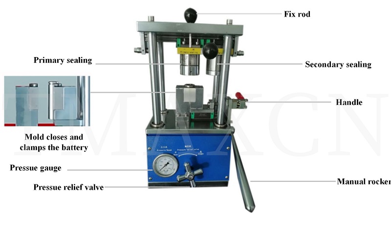 TMAX-PNES-50 es una crimpadora compacta accionada por cilindro para sellar todo tipo de cajas de cilindros en laboratorios de investigación y desarrollo de baterías. El molde de configuración estándar se puede utilizar para sellar baterías cilíndricas 18650 .
